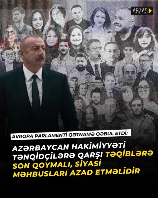 | Avropa Parlamenti qətnamə qəbul etdi: Azərbaycan hakimiyyəti tənqidçilərə qarşı təqiblərə son qoymalı, siyasi məhbusları azad etməlidir: https://t.co/BvX02U2SqI pic.twitter.com/j79AcwxVBR— AbzasMedia … |