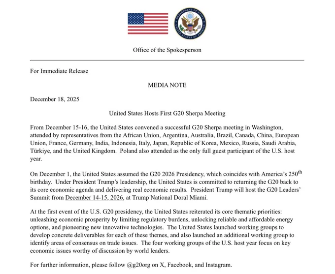 | NEW!!! US kicks off G20 presidency with return to ‘core economics’ as russia joins Washington talks Trump admin hosts first Sherpa meeting with focus on deregulation and energy. Poland joins the inner… |