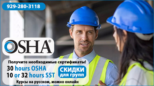 Advertising Space 3 | OSHA Получите необходимые сертификаты! 30 hours OSHA 10 or 32 hours SST Скидки для групп Курсы на русском, можно онлайн +1 (929)280-3118